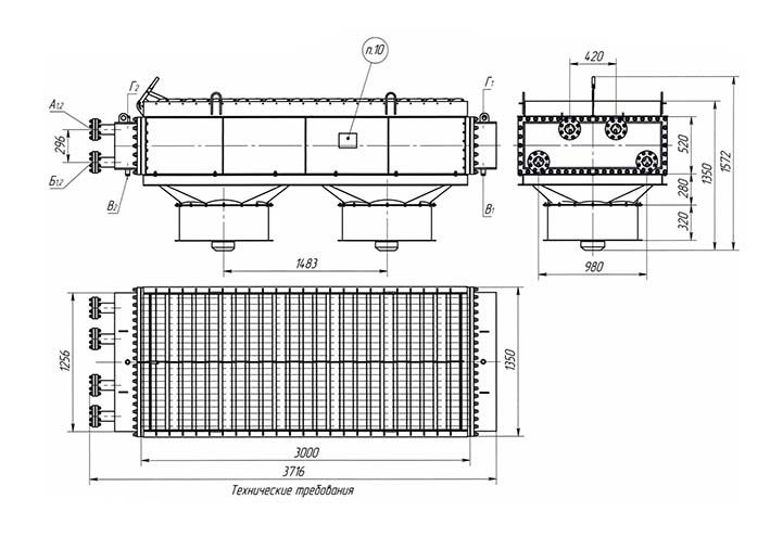 | Изготавливаем разборные воздушные охладители по ДОСТУПНЫМ ЦЕНАМ. На предприятии-изготовителе аппарат испытать на прочность и герметичность пробным гидравлическим давлением. Материал сборных единиц и деталей аппарата, соприкасающихся с рабочей средой, кроме теплообменных труб — 9Г2С. Материал теплообменных труб — сталь 20. Материал оребрения теплообменных труб — алюминий 1060. Материал остальных сборочных единиц деталей — Ст 3. Масса и размеры аппарата уточняются при рабочем проектировании. Сроки изготовления от 2 МЕСЯЦЕВ. |