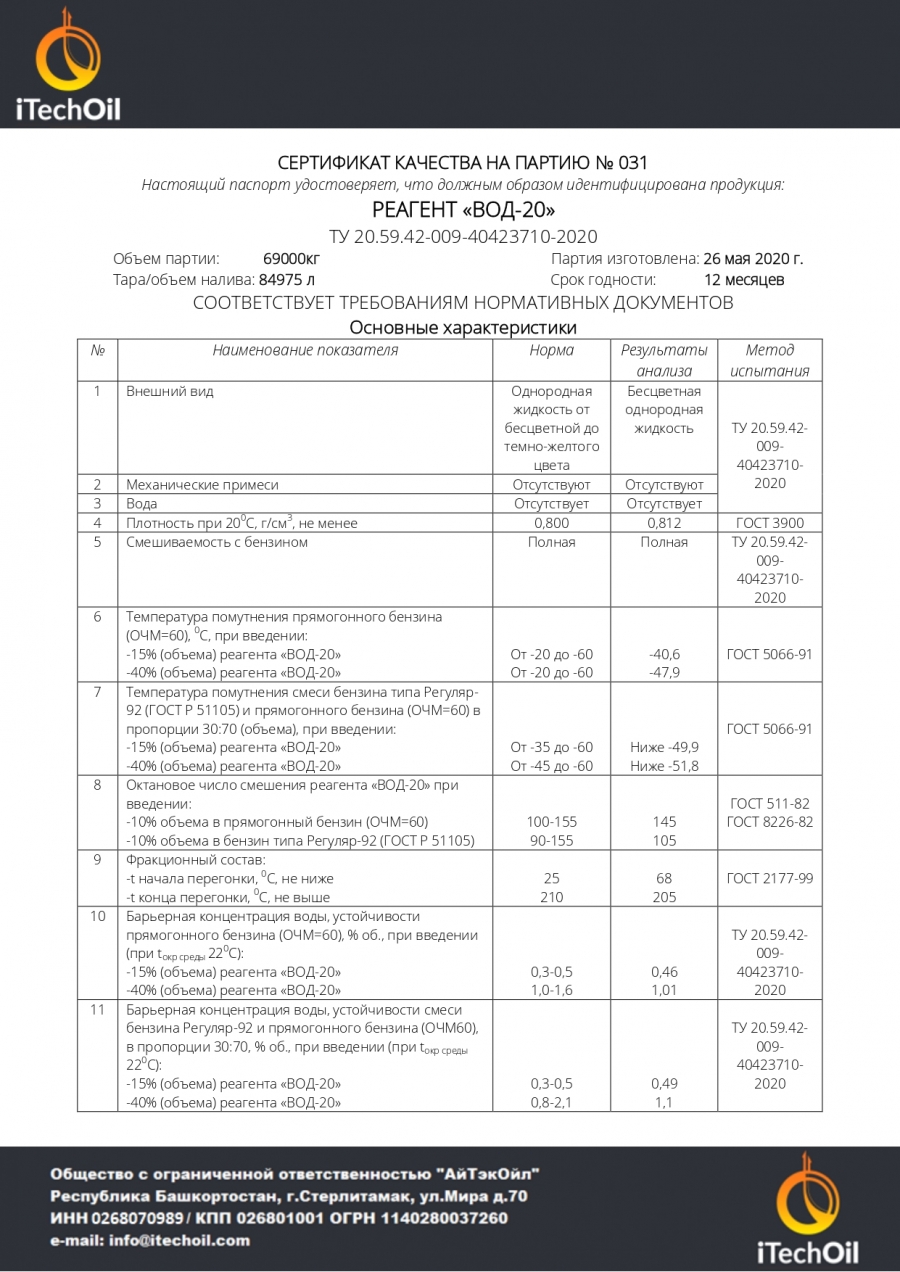 | Реализуем октаноповышающую присадку ВОД-20, отличные характеристики, выгодная цена. Все параметры в паспорте продукта, инструкцию вышлю по запросу. По всем вопросам звонить по контактам, указанным в объявлении. Базис отгрузки: г. Уфа, Республика Баашкортостан. |