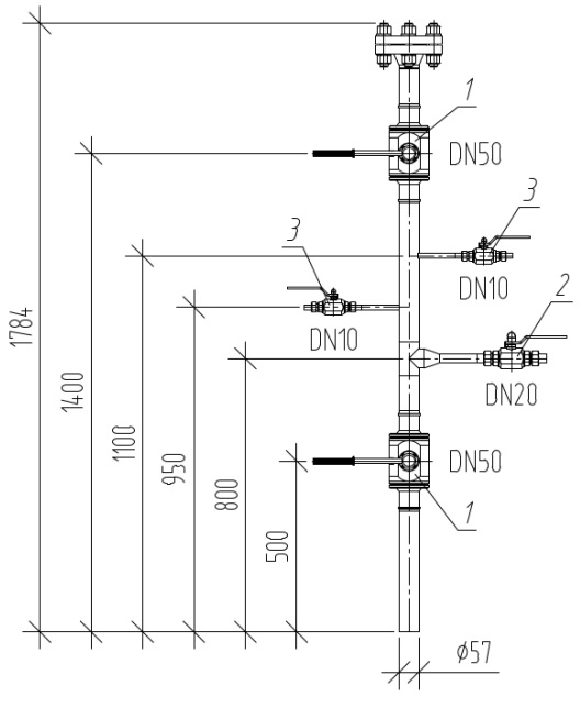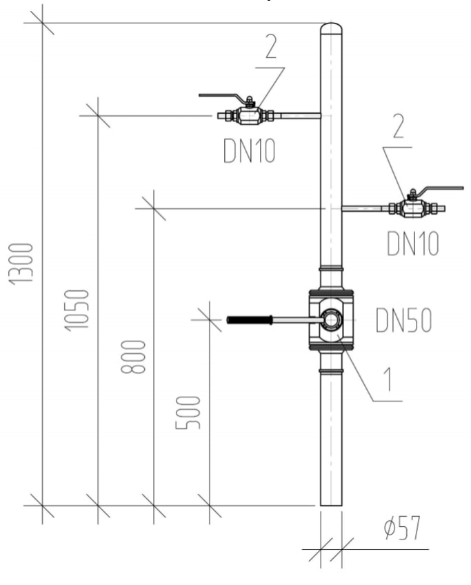 Стояк отбора газа СОГ DN50, 2DN50, DN50/DN25